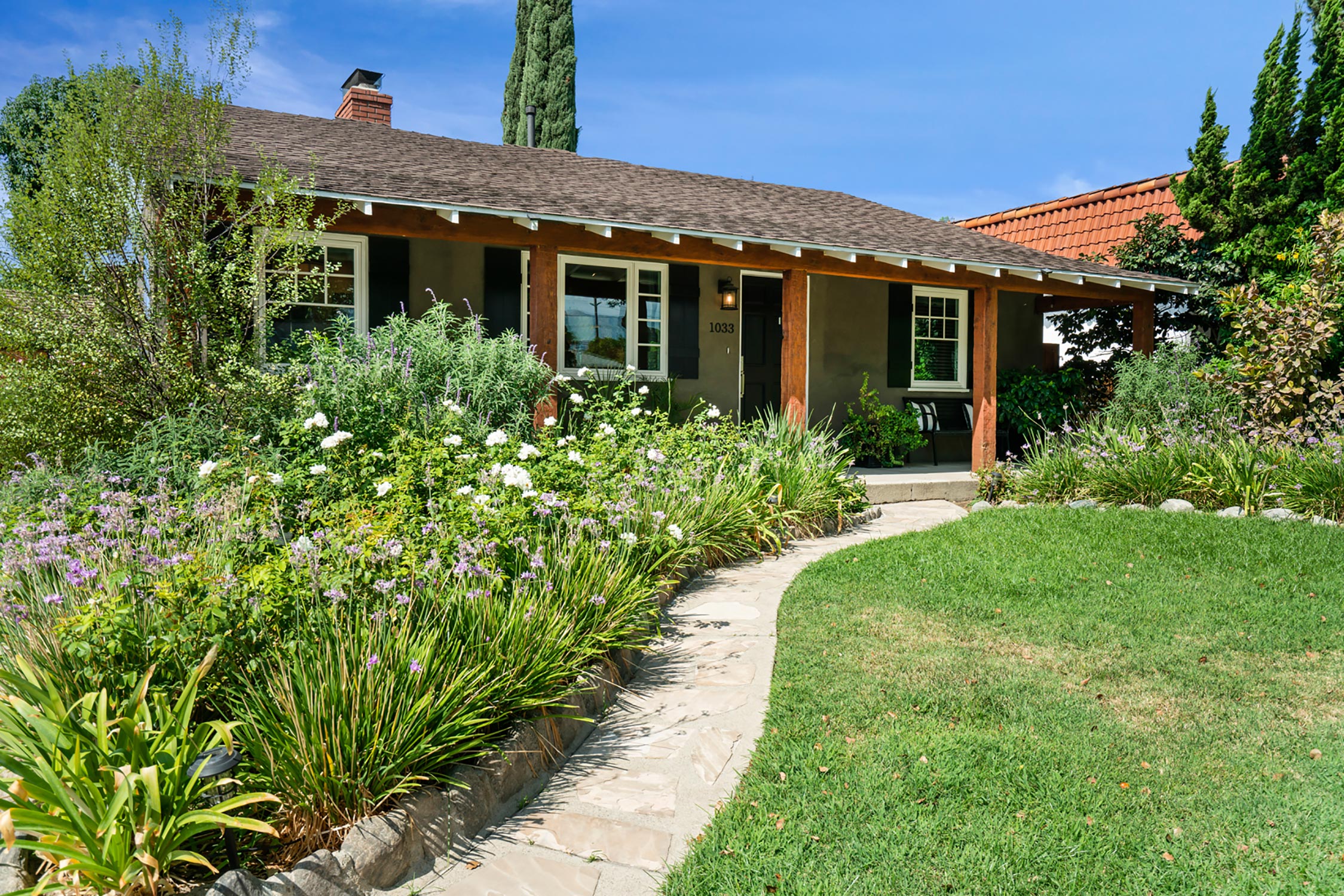 Experience a stunning reimagined traditional in Burbank’s coveted Magnolia Park neighborhood. This beautiful home has been meticulously remodeled/reconstructed with no expense spared. The home showcases upgrades that include an electric car charging system, Encore Ceramic handcrafted tiles, Restoration Hardware fixtures, custom stucco work, custom cabinets, new electrical panel, copper plumbing and double paned windows just to name a few! A beautifully landscaped yard and covered front porch featuring exposed wood posts and beams greet you as you walk up the front path. Enter and you will notice the new oak flooring, coved ceilings, recessed lighting, and crown mouldings. The living room boasts double paned windows, a fireplace, with custom handcrafted tiles and French doors leading to the spacious family room. The oak flooring, new windows and recessed lighting are carried through to the dining room which features custom built cabinets with led lighting. This chef’s kitchen won’t disappoint as it highlights a gorgeous backsplash, high end granite countertops, custom cabinetry, stainless steel appliances, that feature a six burner Thermador convection oven range, dishwasher and built-in microwave, separate ice maker, utility sink, recessed LED lighting with access to the backyard. The large family room features oak flooring, recessed lighting, crown moulding, custom built cabinetry and shelves with a granite countertop desk area and a door to the backyard area. Off the living room a hallway leads to a separate wing that includes a bedroom, striking front bathroom that highlights exquisite tile design, recessed lighting and a shower tub combo and a separate laundry room. Adjacent to the family room is the main bedroom, with a door to the backyard and an en-suite with a beautifully designed main bath. The shower showcases a stunning graduated handcrafted tile design. The large walk-in closet has an elegant, built-in closet system. Adjacent to the living room there is a separate wing of the house that includes a bedroom, remodeled bathroom with Restoration Hardware vanity, sconces and medicine cabinet as well as a separate laundry room(Please note that third bedroom was converted into the current walk in closet and laundry room, but can be converted back). As you walk out into the backyard area there are multiple patio areas and a large two car garage, perfect for the already DESIGNED and approved ADU plans. An additional separate bonus office space off the garage provides the perfect space for remote work. The rest of the yard features a walking path leading to a vegetable garden and shaded area behind the garage. Upgrades include high efficiency SEER rated A/C/heat including new ducting with Honeywell WiFi thermostat. This neighborhood won’t disappoint! Enjoy walking or biking as this location has a walk score of 81 and a bike score of 85. Enjoy the Chandler Bike Path, Magnolia shops and restaurants including Portos, Close to Verdugo Aquatic Center, DeBell Golf Course and Toluca Lake. Minutes to Universal Studios, Warner Bros., Disney Studios, Discover, ABC, Whole Foods, LA Equestrian Center, Griffith Park, LA Zoo, Starlight Bowl and Hollywood Bowl.